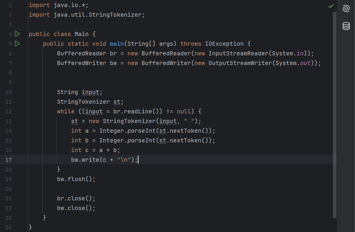 | [JAVA] 빠른 입출력: BufferedReader, StringTokenizer (0) | 2024.07.04 |