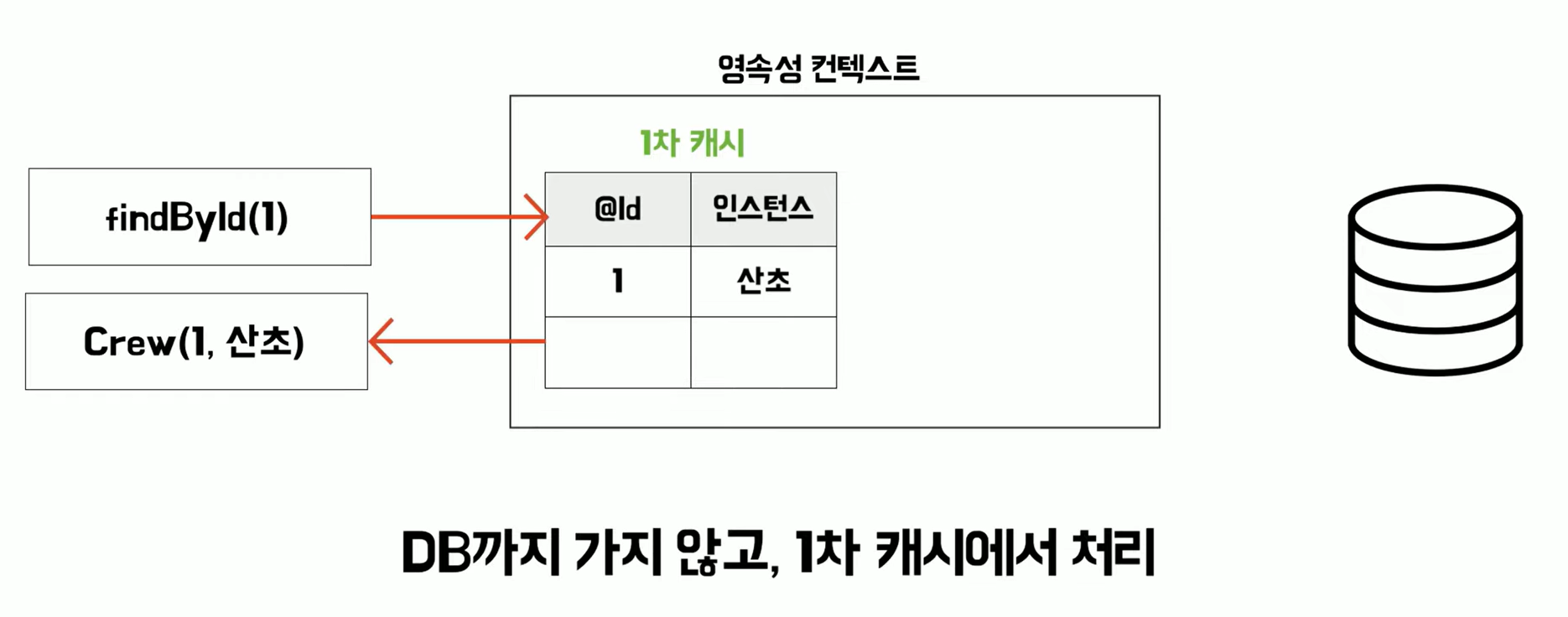 → 1차 캐시, 쓰기 지연, 변경 감지의 대상